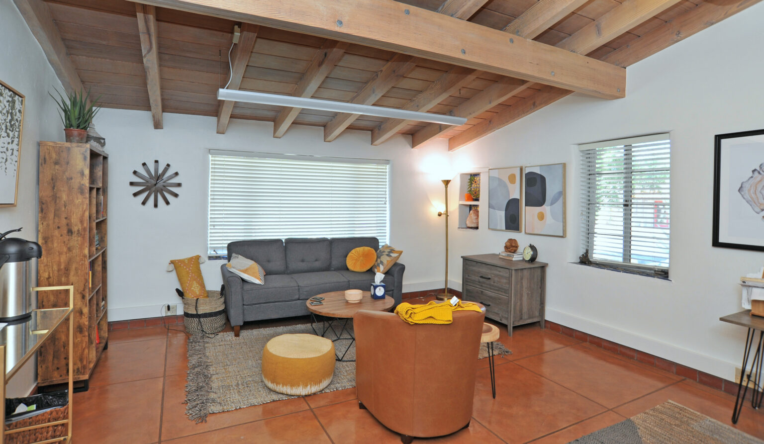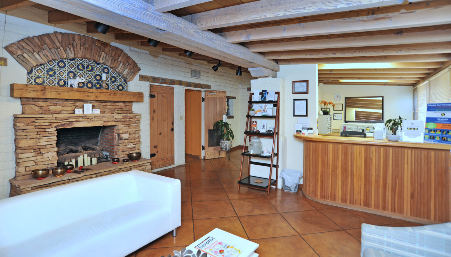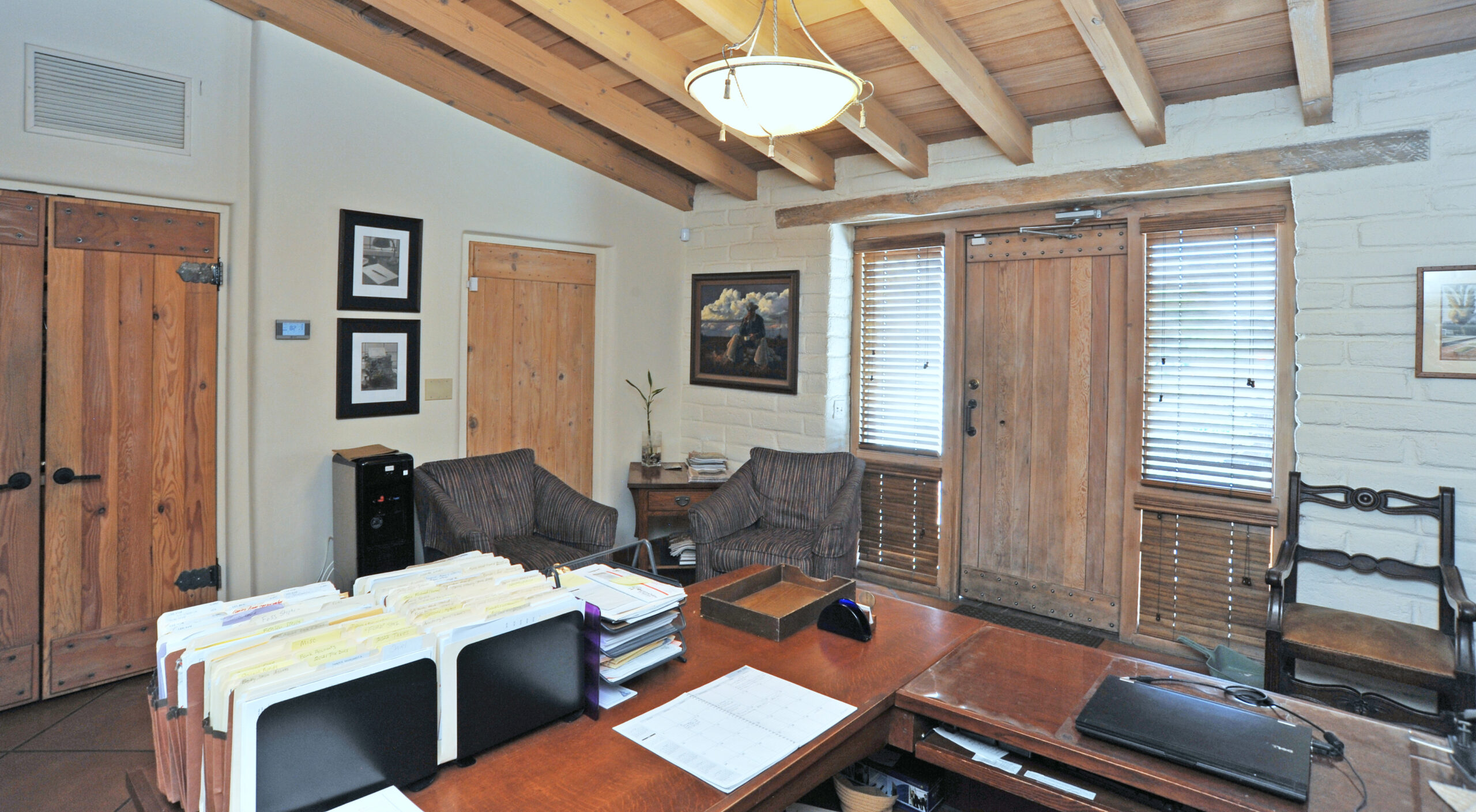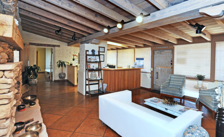 The main lobby area of Missio Suites was orginally the outdoor veranda where guests at the dude ranch gathered for their festivities at the end of the day.